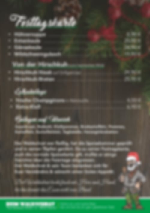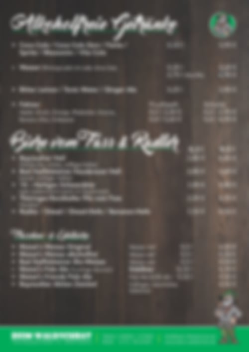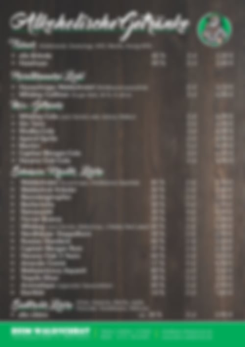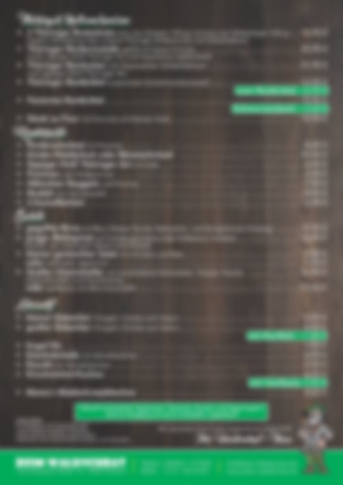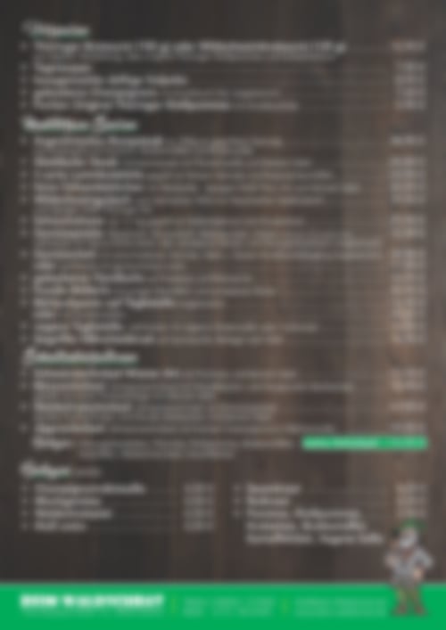 Auszug aus der Speisekarte